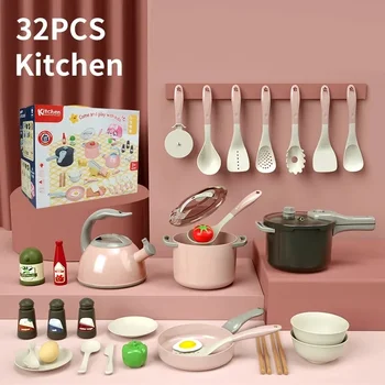 32 قطعة مجموعة ألعاب مطبخ صغيرة مقلدة للأطفال، مجموعة أدوات المطبخ، ألعاب مرحة تعليمية