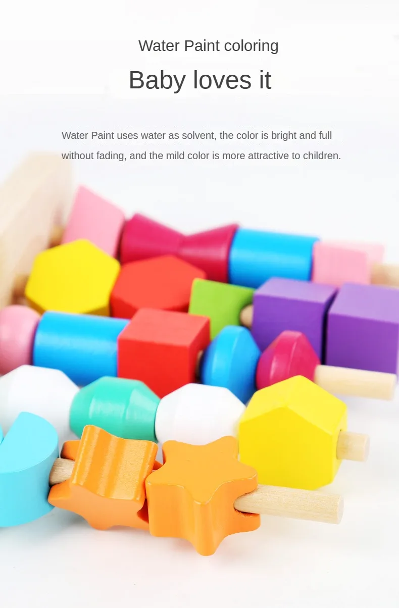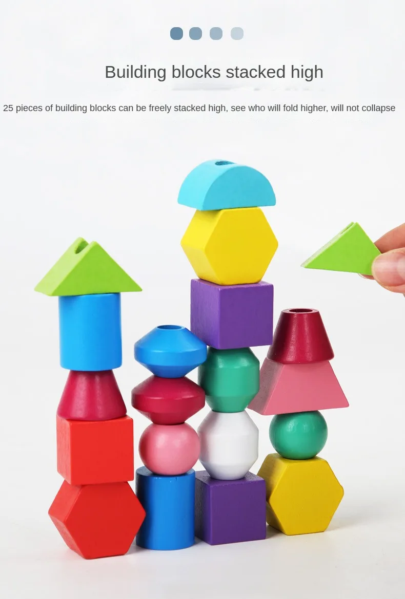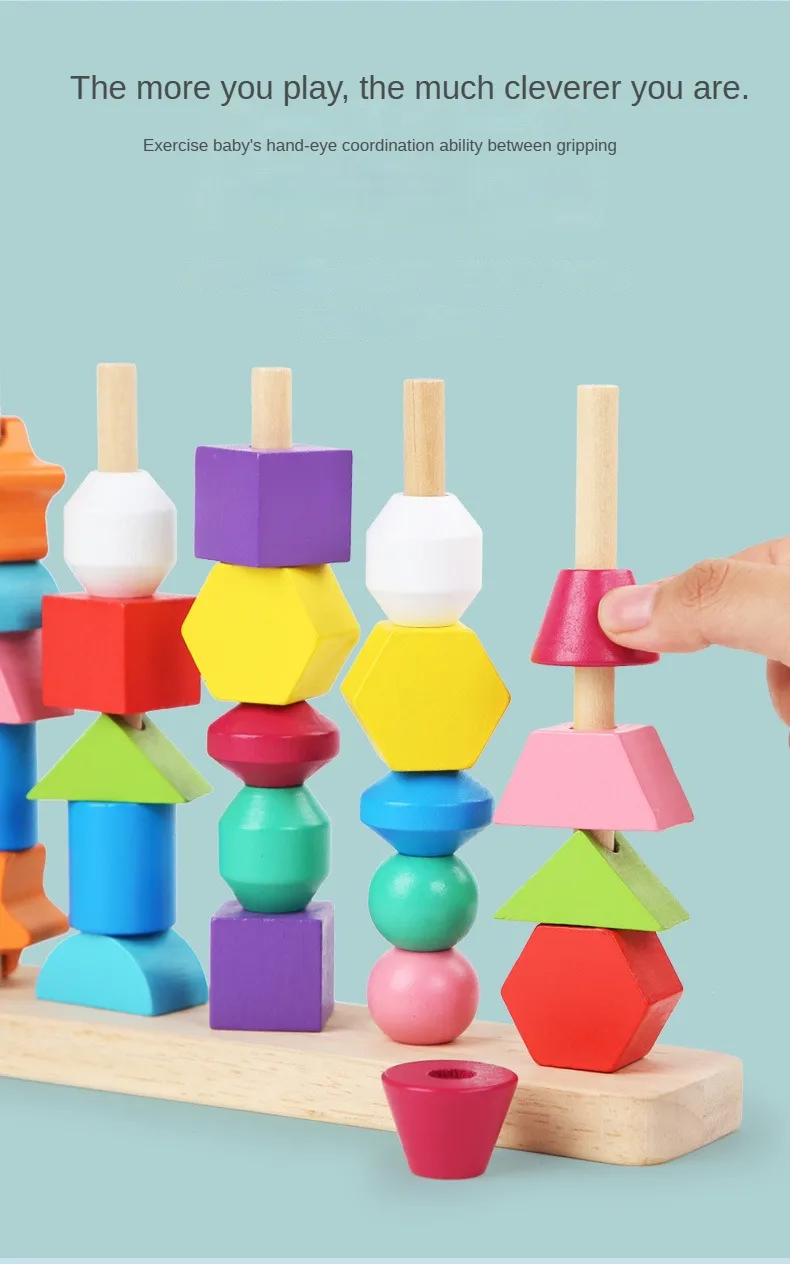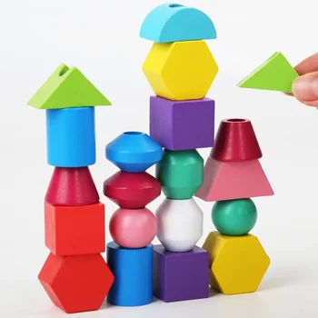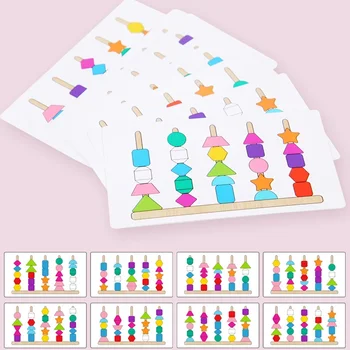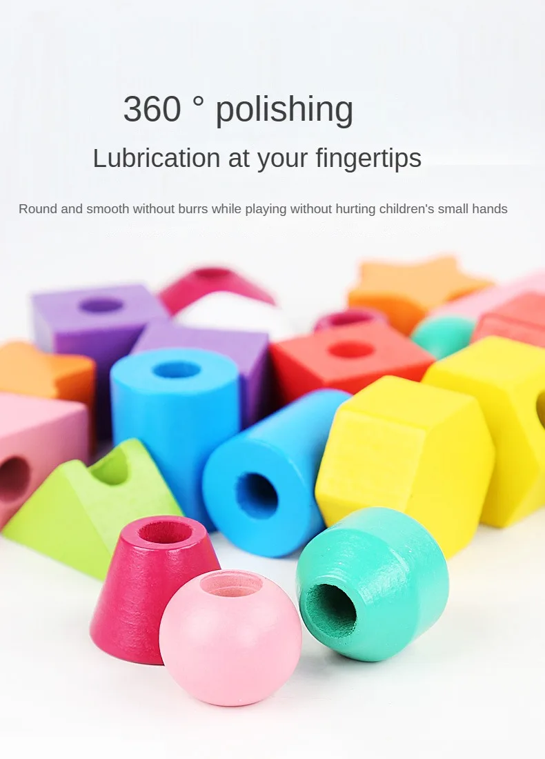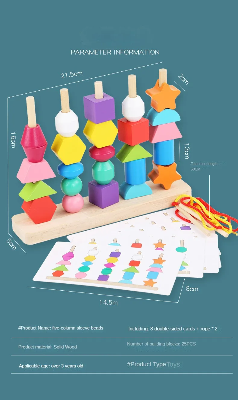 制五套柱串珠幼儿园宝宝早教颜色形状认知穿绳积木益智玩具